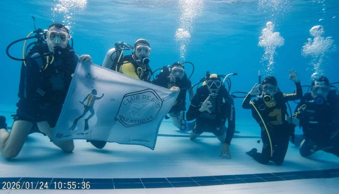 Durante el tiempo de inmersión practicamos flotabilidad, navegación, aleteo, vaciado de la máscara, recuperación del regulador principal y asistencia a compañeros, subida y emersión por el cabo guía.